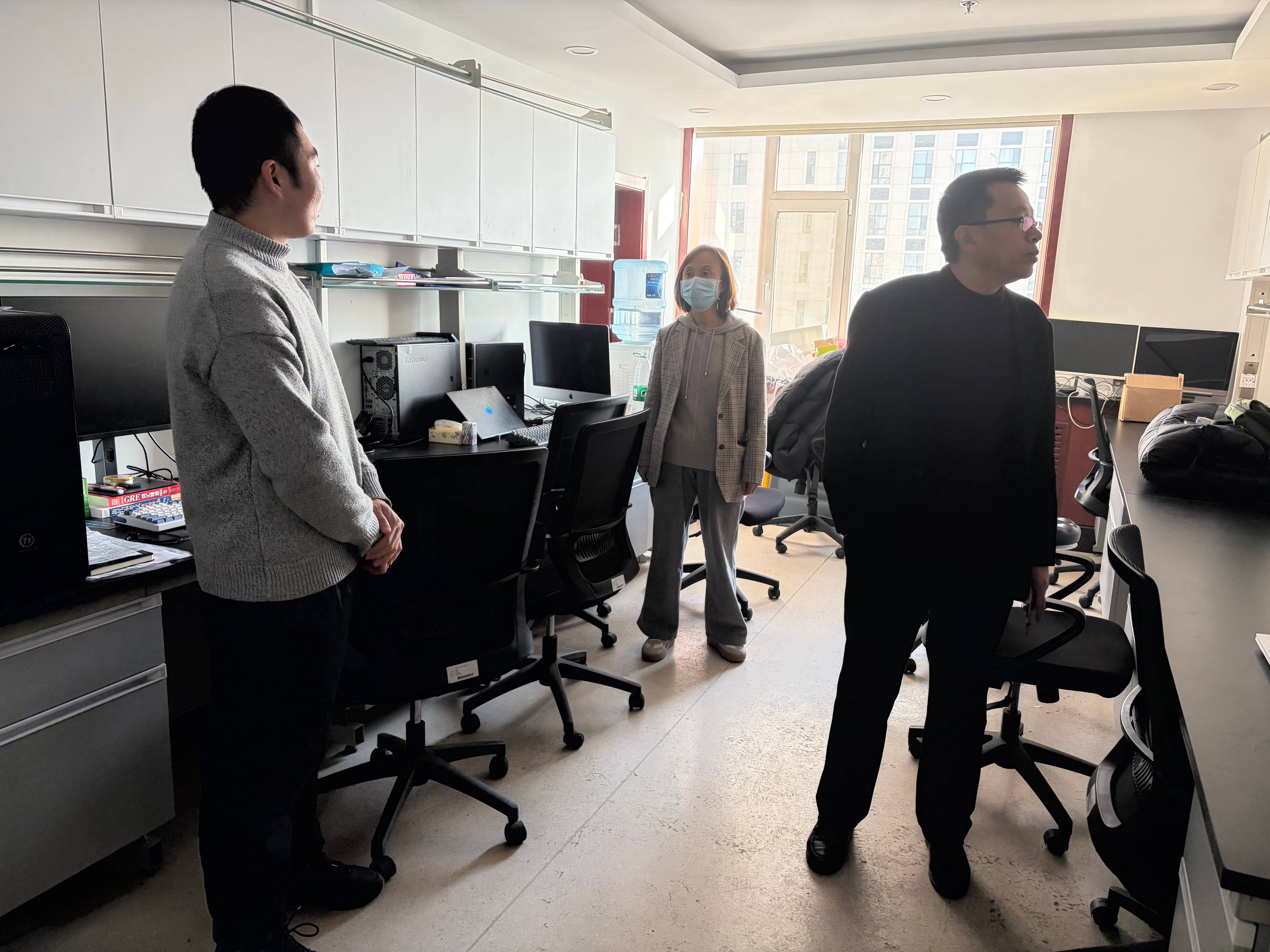 检查人员一行聚焦校园消防安全、建筑场所安全、实验室安全等重点领域和关键环节,对照相关领域规范标准,对所辖区域开展自查自纠,重点检查消防安全,尤其是有无违规用电、占用堵塞疏散通道等情况,着重排查使用插排、充电器、电线收纳不规范等问题,及时发现并清除可能存在的安全隐患。对假期不用的教室、研修室、会议室、实验室等公共房间粘贴封条处理,确保假期楼宇安全。